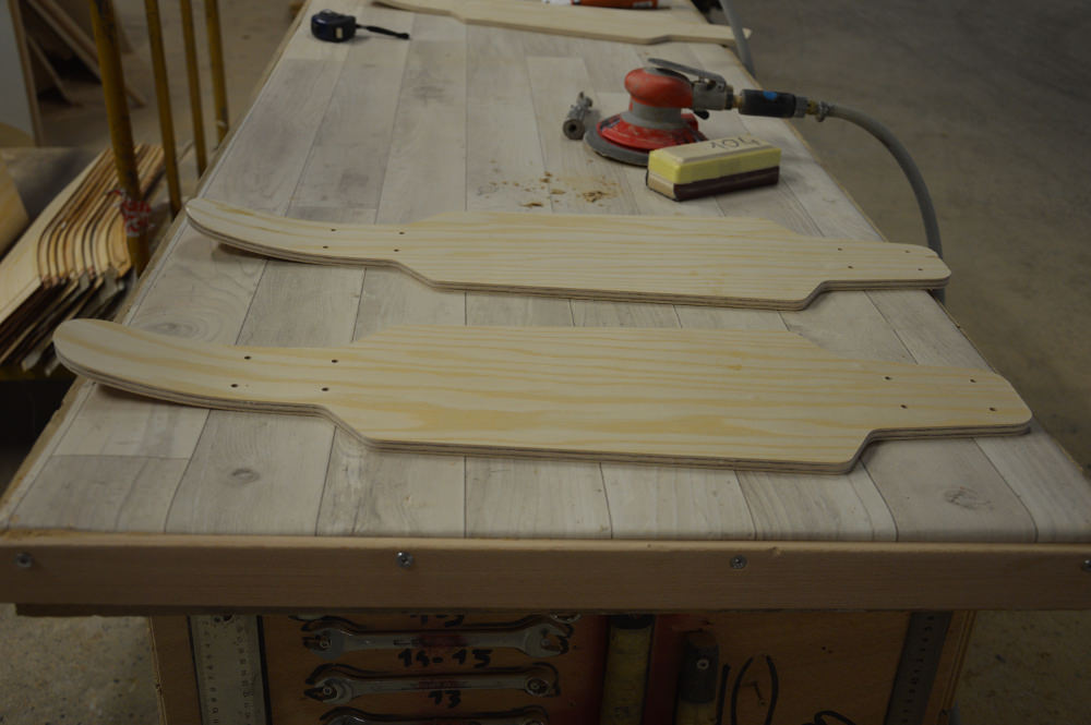 En France, la fibre de lin a des performances naturellement très bonnes dû au climat et au savoir faire. Cela a donc du sens de produire des produits en France avec des matériaux qui poussent en France ! Les essences de bois utilisées sont françaises aussi (frêne et hêtre). J’utilise aussi le frêne dans les skis, car cette essence apporte la nervosité à la structure. Les plateaux de skate sont pressés en Vendée, puis détourés à la fraiseuse numérique pour assurer la qualité. La gravure du skate est réalisée au laser.«